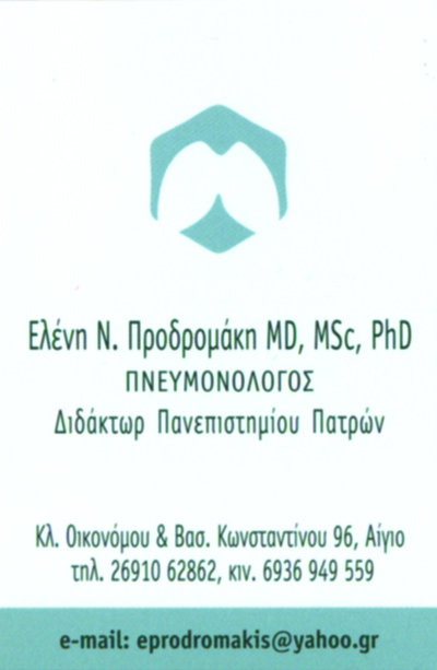 customer tabsΕπικοινωνίαΔιδάκτωρ Πανεπιστημίου ΠατρώνΔέχεται καθημερινά 09:00-13:00, απόγευμα με ραντεβούΠνευμονολόγοι - ΦυματιολόγοιΥγείαΒασ. Κωνσταντίνου 96, ΑίγιοΑΙΓΙΟ ΑΧΑΪΑΣΑΧΑΪΑΠΕΛΟΠΟΝΝΗΣΟΣ 2691062862 6936949559eprodromakis@yahoo.gr Το προτείνω (έχει προταθεί 0 φορές) ΦωτογραφίεςFacebook LikeShare on FacebookTweet Widget